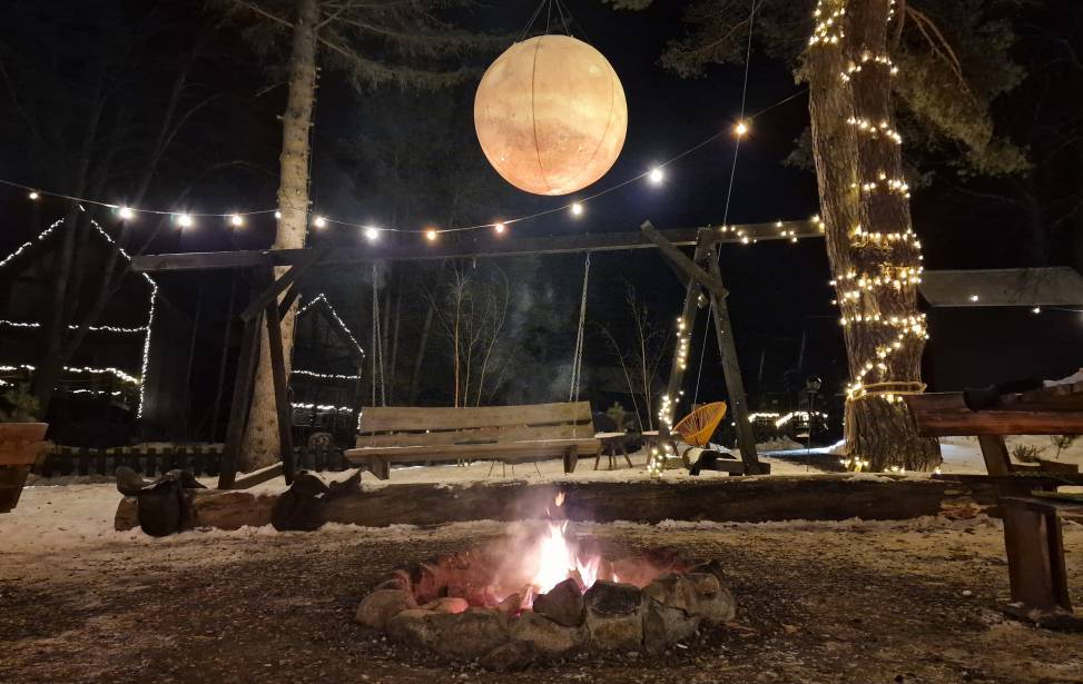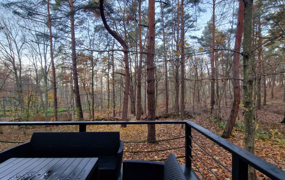 Lokalizacja: spokój i natura: domki są położone na terenie obiektu w dużej odległości od siebie, co zapewnia prywatność i ciszę. Są otoczone lasem i znajdują się w pobliżu Zalewu Wiślanego, co stanowi idealne miejsce na relaks z dala od zgiełku miasta.