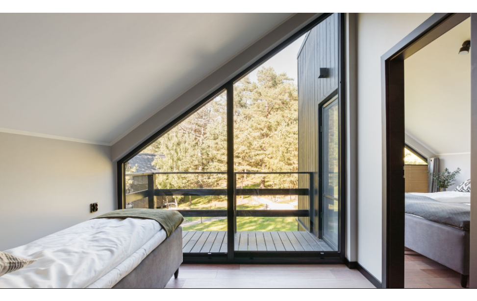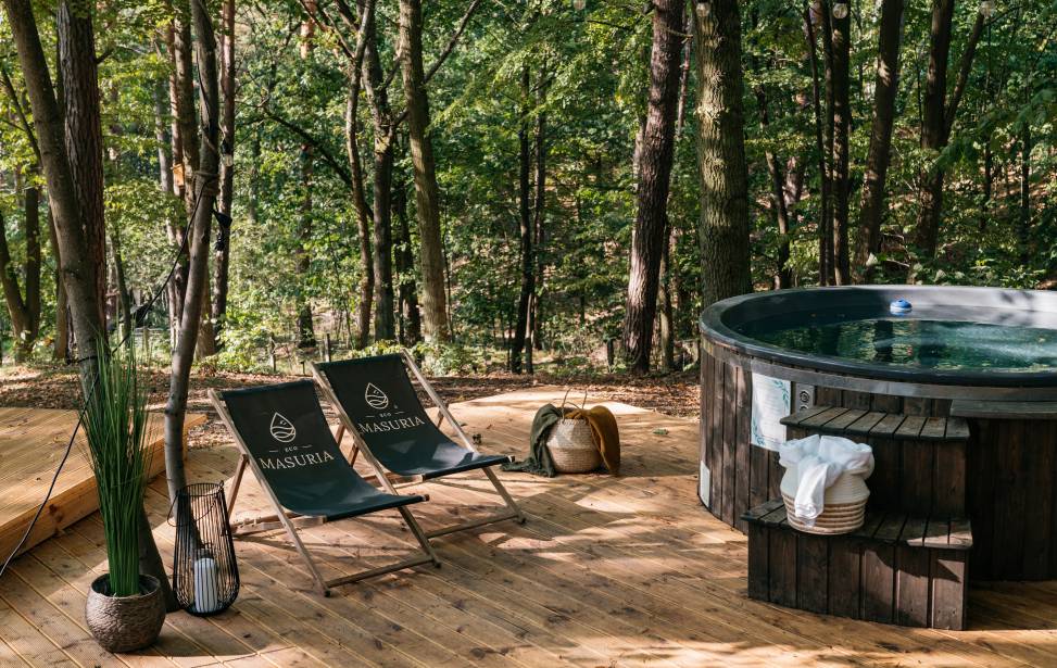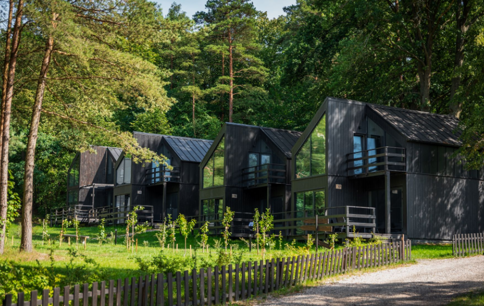 Lokalizacja: spokój i natura: domki są położone na terenie obiektu w dużej odległości od siebie, co zapewnia prywatność i ciszę. Są otoczone lasem i znajdują się w pobliżu Zalewu Wiślanego, co stanowi idealne miejsce na relaks z dala od zgiełku miasta.