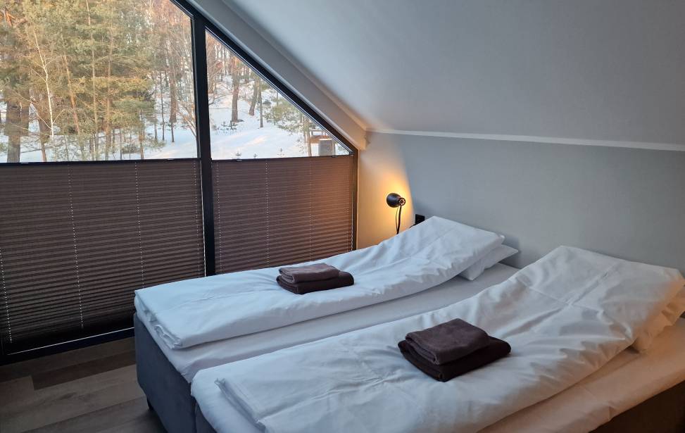 Fantastyczny hotel! Byłem z rodziną na sylwestra. Świetnie się bawiliśmy dorośli oraz dzieci. Obsługa bardzo miła, Jedzenie przepyszne, Bogata oferta śniadaniowa. Lokalizacja cicha i spokojna idealna do relaksu na świeżym powietrzu. Na miejscu jest możliwość wypożyczenia motorów krosowych, rowerów i innych rzeczy. Jest również możliwość morsowania, relaksu w saunie lub jacuzzi w zimnie dni na zewnątrz. Byliśmy w apartamencie dobrze wyposażonym, z kuchnią, łazienką, telewizorem, rozkładaną kanapą i dwoma jednoosobowymi łóżkami na piętrze domku. Na miejscu jest również restauracja czynna do 20.30 z możliwością wzięcia jedzenia na wynos do domku bądź pokoju. Cały ośrodek serdecznie polecam i na pewno do niego wrócę.